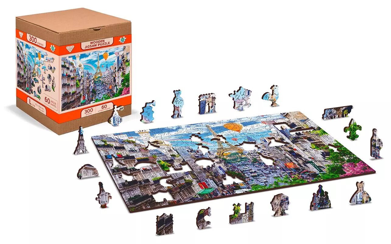 WOODEN CITY Dřevěné puzzle Rušná Paříž 2v1, 300 dílků EKO