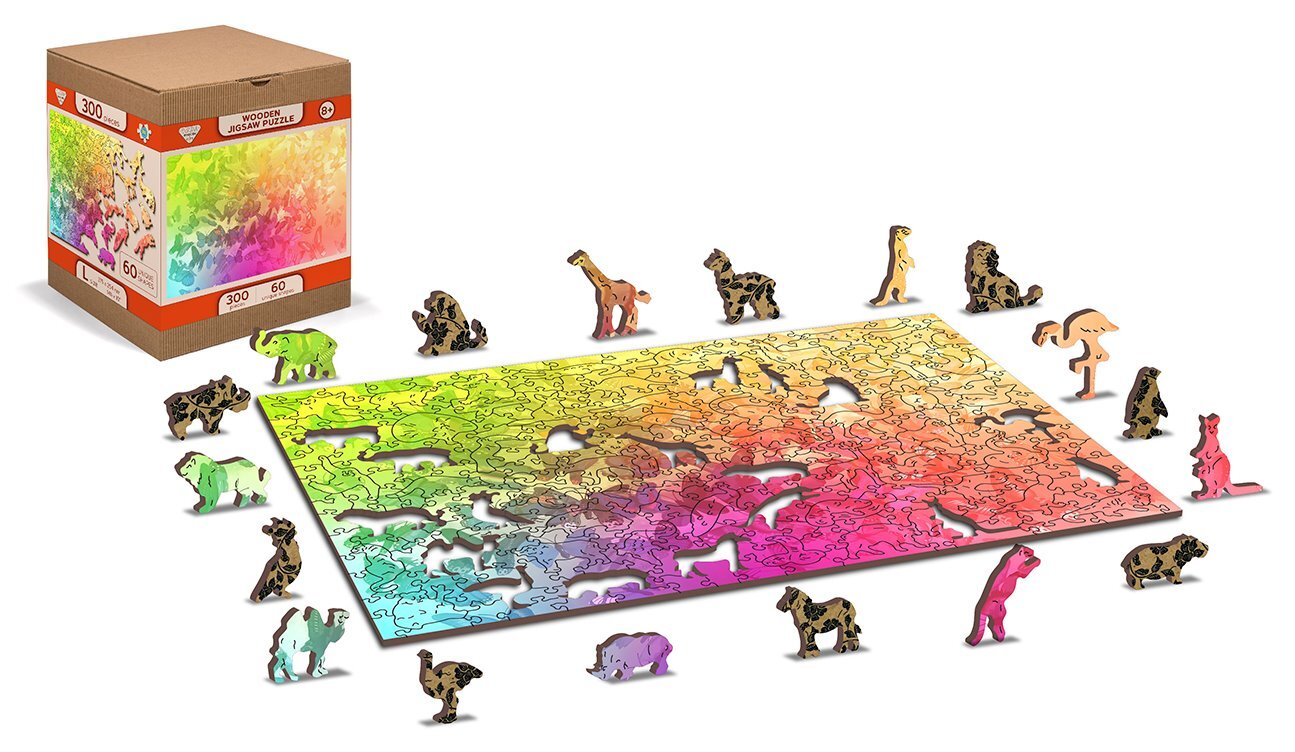 Laserem vyřezávané dřevěné puzzle WOODEN CITY se svými speciálně tvarovanými dílky je neskutečně zábavné. Část dílků je vyrobena ve tvaru zvířat, staveb nebo předmětů , jejichž výsledný efekt umocňují laserem zvýrazněné detaily. Tyto dílky mohou samostatně stát jako drobné figurky. Skládání puzzle s různotvarými dílky je obtížnější a představuje větší výzvu, než skládání klasického puzzle. Puzzle je navíc oboustranné , skládat můžete jak podle obrázku (lícová strana), tak podle tvaru (rubová strana se vzorem). Značka WOODEN CITY kromě unikátního konceptu puzzle nezapomíná na ekologii, u těchto výrobku proto nenaleznete žádné plastové obaly .