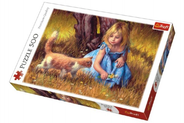 Na první pohled trochu kýčovitý obrázek, který vyobrazuje malou holčičku, jak si hraje v trávě s kočkou, úplně se mi obrázek nelíbí graficky i co se týče barevnosti. Jinak se musí ocenit, že jsou puzzle kvalitní, osvědčená značka Trefl zkrátka nezklame, vydává celou řadu puzzle od těch nejsložitějších po nejjednodušší baby puzzle, tyto se skládají z pětiset dílků a není úplně těžké je složit, trochu obtížnější je tráva, kde je těžké od sebe odlišit jednotlivé dílky.