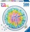 Puzzle 2D: Paleta kolorów 500 elementów dla dorosłych - po ułożeniu mają kształt koła, w którym zamknięto motyw wielokolorowego obrazka. Są przeznaczone dla osób powyżej 12 roku życia.