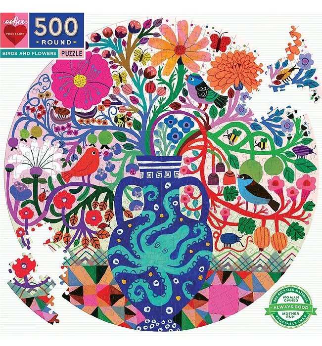 EEBOO Kulaté puzzle Ptáčci s květinami 500 dílků