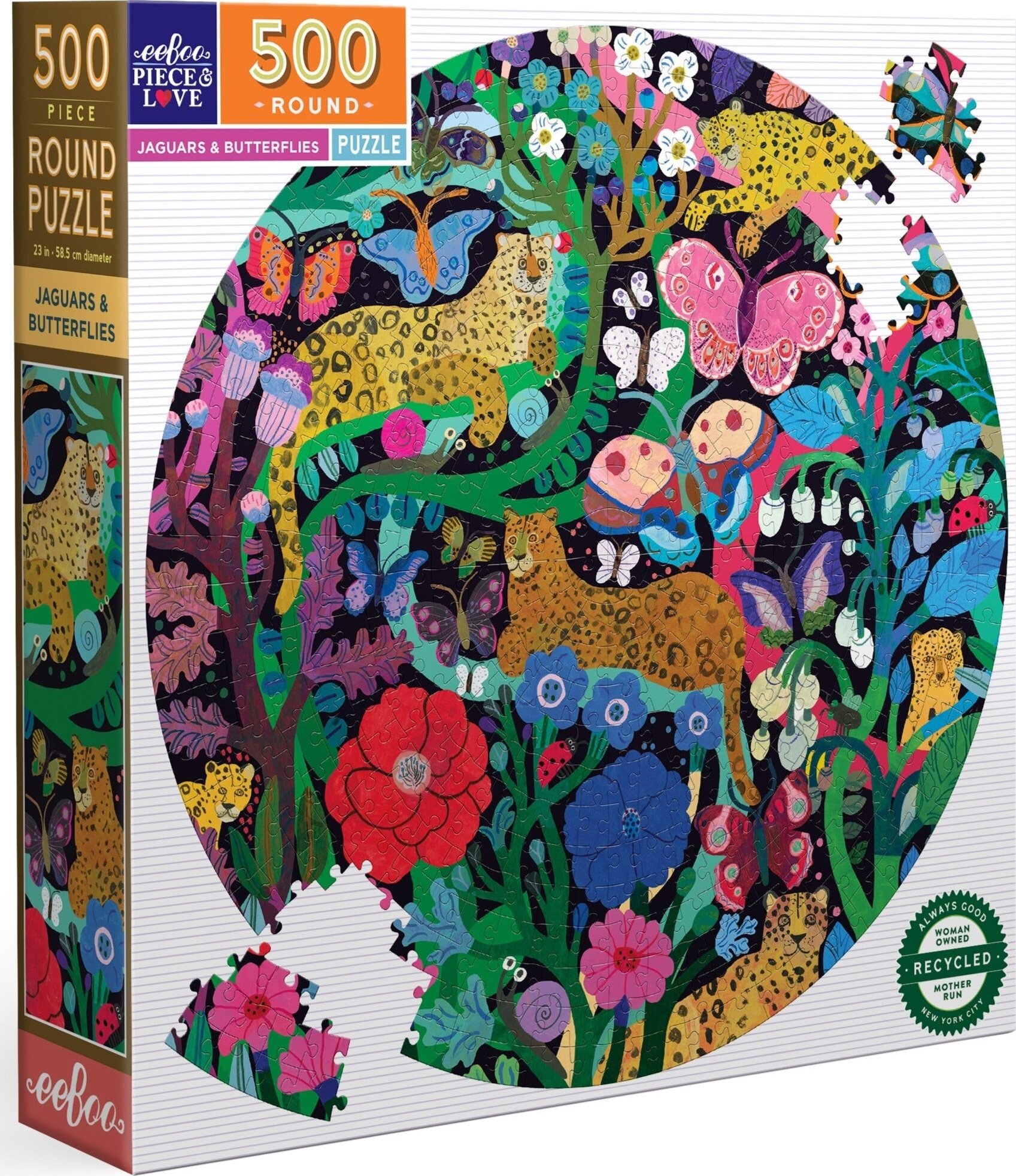 EEBOO Kulaté puzzle Jaguáři a motýli 500 dílků