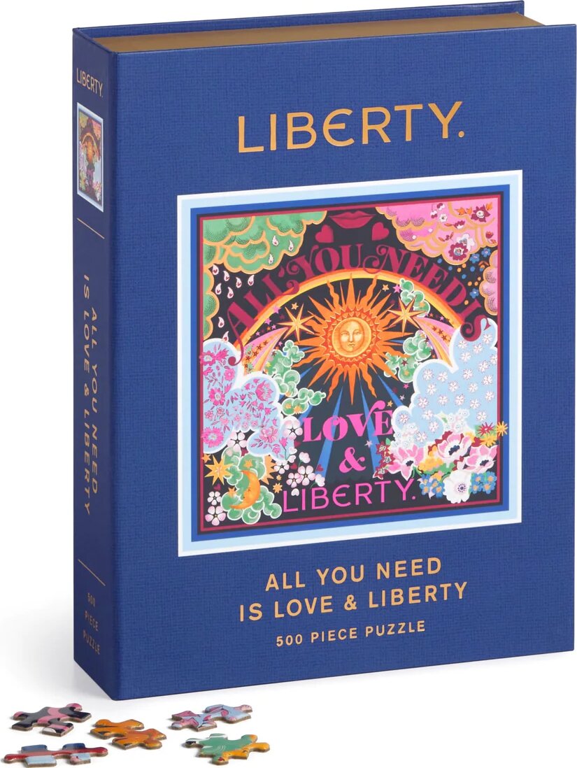 Puzzle Liberty: Všechno, co potřebuješ, je láska v obalu ve tvaru knihy je obměnou klasického 500 dílného puzzle. Baleno v magnetické krabičce ve tvaru knihy . Obsahuje předlohu skládaného motivu . Je to dokonalý dárek pro milovníky umění i puzzle. Rozměr složeného puzzle cca 40,6 x 40,6 cm