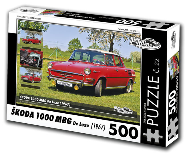 Retro auta Puzzle č. 22 - ŠKODA 1000 MBG De Luxe (1967) - 500 dílků