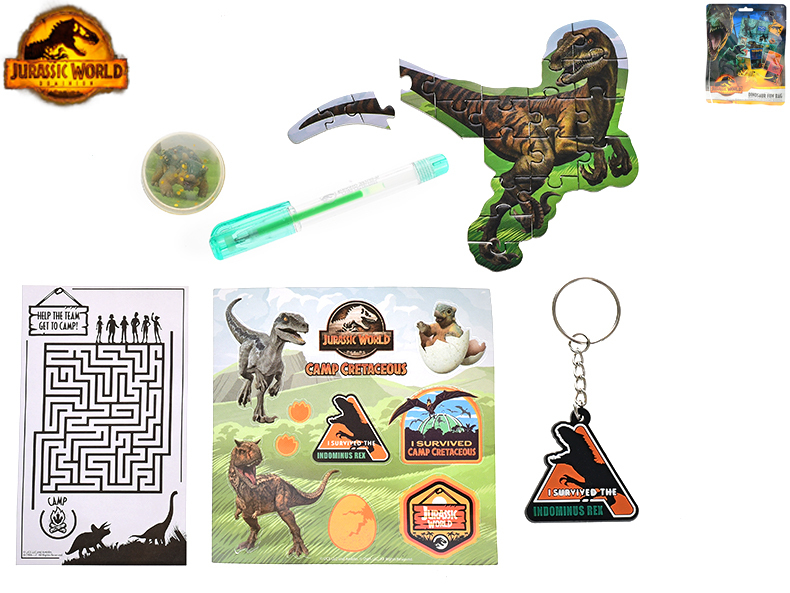 Jurský svět sada dino aktivit: hopík, labyrint, puzzle, nálepky, klíčenka, pero v sáčku
