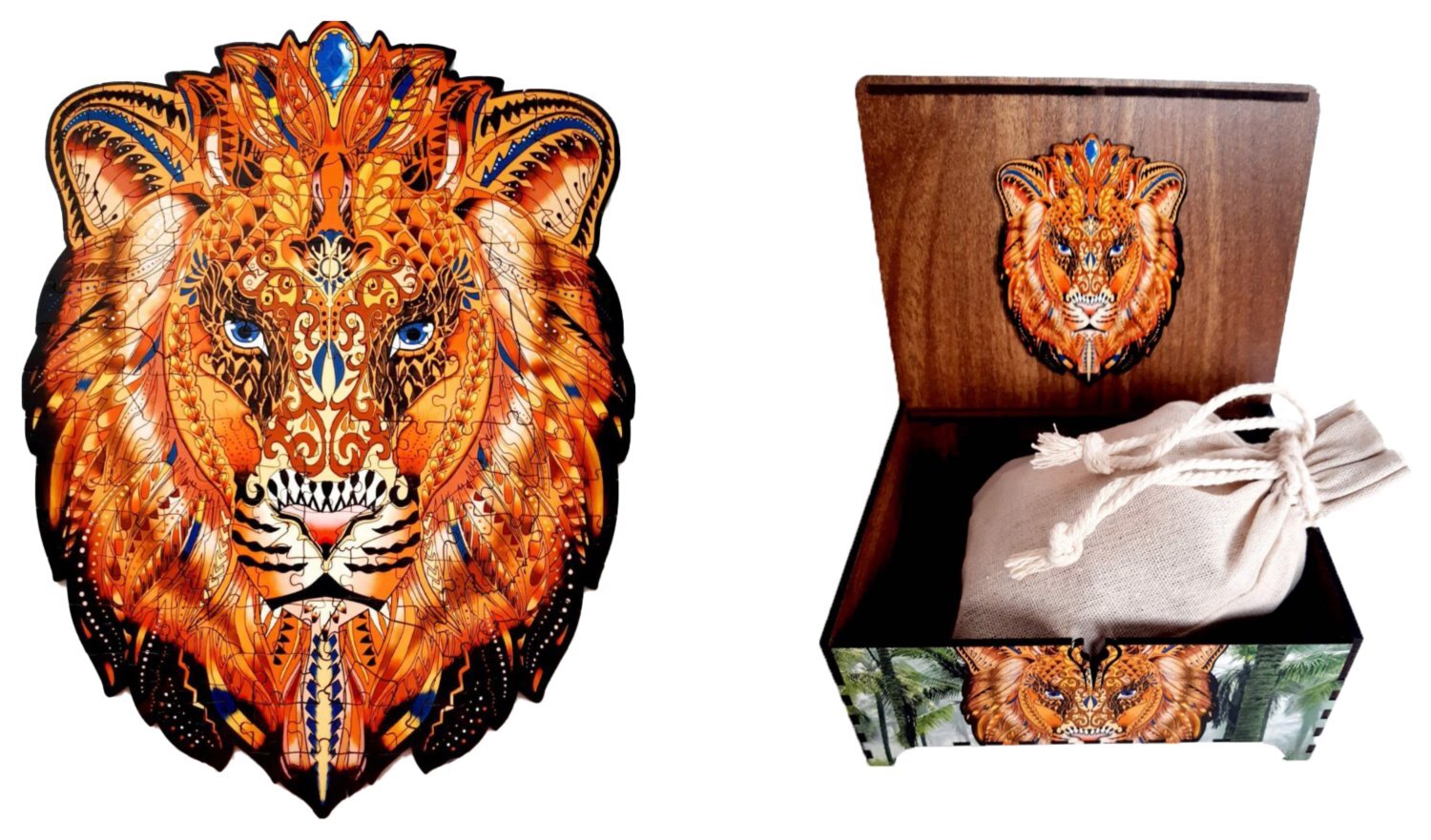 puzzle i krabička jsou vyrobeny z kvalitní 3mm HDF desky ( dřevovláknitá deska s vysokou hustotou)