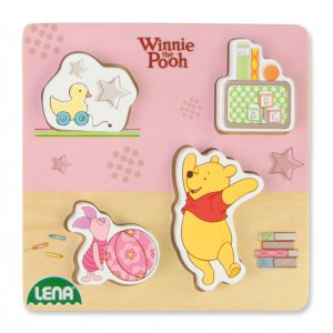 Lena Dřevěné puzzle medvídek Pů s prasátkem Dřevěné barevné puzzle vyrobeno pro nejmenší děti. Rozděleno do několika části s předem vytvořenými ážkami v podložce, která zlepšují usazení jednotlivých částí dílků. Česká společnost LENA-hračky, s.r.o. se zaměřuje na výrobu a distribuci kompletního svého sortimentu do všech zemí celého světa.Firma Lena si dává záležet, aby Vám nabídla opravdu kvalitní a nezávadné hračky a proto se při jejich výrobě používají pouze nejkvalitnější materiály a zároveň se průběžně ověřuje jejich kvalita. Díky nově postavené výrobní hale, která využívá moderní technologie výroby a může se pochlubit ekologickým provozem, Vám firma Lena může nabídnout výrobky, které úspěšně splňují nejnáročnější testy na ověření kvality.
