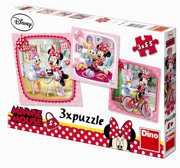 Minnie na návštěvě - puzzle 3 motivy v balení 3x55 dílků