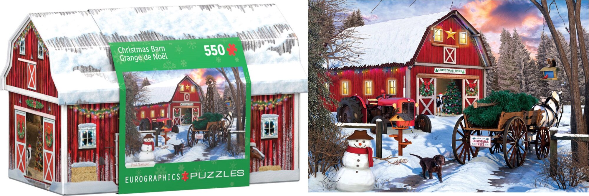 EUROGRAPHICS Puzzle v plechové krabičce Vánoce na farmě 550 dílků