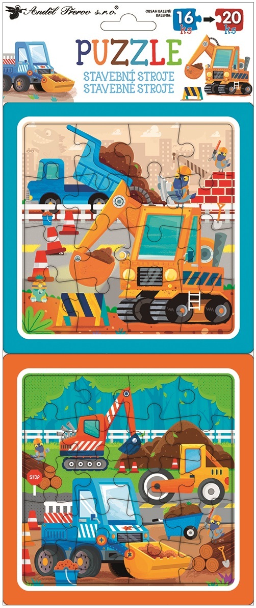 Puzzle 2 obrázky 15 x 15 cm, 16 a 20 dílků, stavební stroje