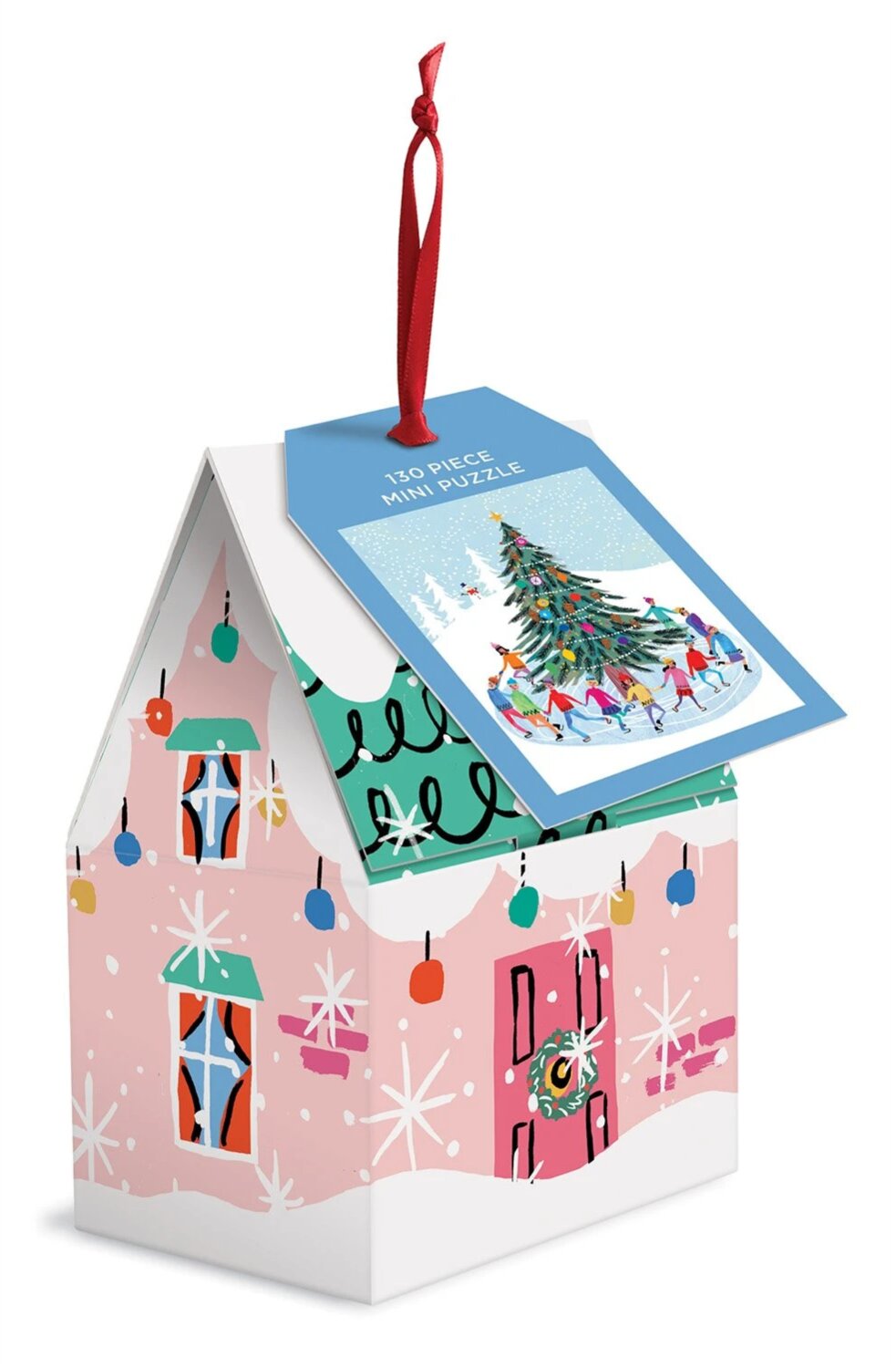 Součástí mini balení je předloha skládaného motivu. Baleno v krabičce ve tvaru zasněženého domečku s visačkou s motivem puzzle. Rozměr složeného puzzle cca 15,2 x 21 cm