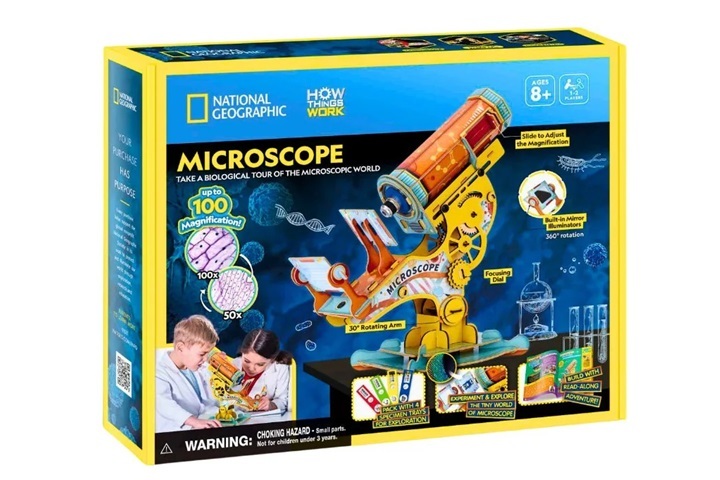 Zestaw Cubic Fun 3D - National Geographic - Mikroskop to propozycja dla dzieci, które uwielbiają odkrywać tajemnice świata nauki i jednocześnie lubią tworzyć własne konstrukcje. Dzięki możliwości samodzielnego złożenia modelu mikroskopu najmłodsi mogą krok po kroku zrozumieć, jak działa to niezwykłe urządzenie, a następnie wykorzystać je w praktyce, obserwując mikroskopijne szczegóły otaczającego nas świata.