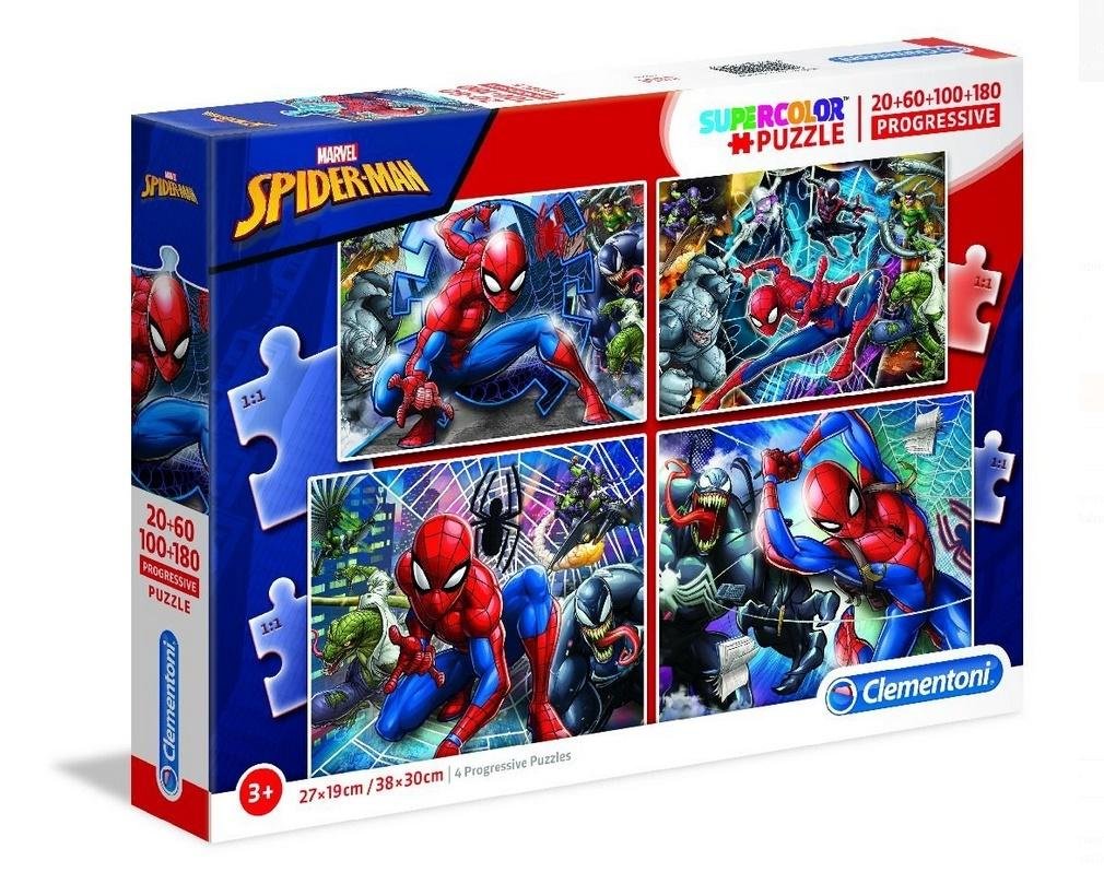 Puzzle 20+60+100+180 elementów Super Kolor - Spider-Man