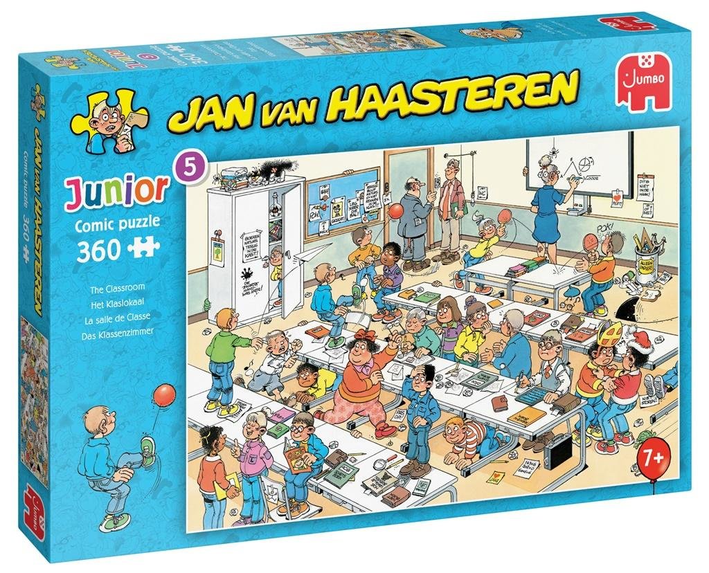 Od dziesięcioleci, Jan van Haasteren tworzy specjalnie dla marki Jumbo, niezwykle kolorowe humorystyczne ilustracje z dbałością o najdrobniejszy nawet szczegół. Nic więc dziwnego, że puzzle Jana van Haasterena stały się niekwestionowanym numerem 1 wśród komiksowych układanek. Większość fanów jego twórczości natychmiast zacznie szukać znaku rozpoznawczego Jana płetwy rekina, którą znaleźć można we wszystkich stworzonych przez niego puzzlach!