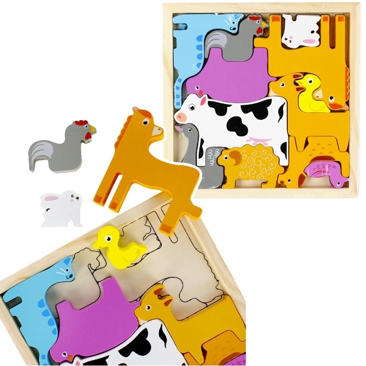 Rozvíjí kreativitu a manuální dovednosti dítěte, puzzle má krásné barvy. Edukační puzzle jsou dokonalým řešením pro dlouhé podzimní večery. Zábavou je sladit kvádr do vhodného tvaru, v tomto případě jsou to zvířátka. Sada obsahuje: dřevěná zvířátka.
