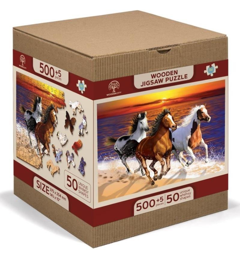 Wooden City Puzzle Koně ve vodě 505 dílků, dřevěné