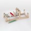 Stav je vyroben z kvalitního lakovaného dřeva a natřen nezávadnými, netoxickými barvami, které splňují přísné bezpečnostní normy EN71 a ASTM. Hračku doporučujeme pro batolata starší 36 měsíců, která tak mohou rozvíjet přesnost pohybů prstů i rukou a zároveň objevovat svět tvoření a textilní výroby.