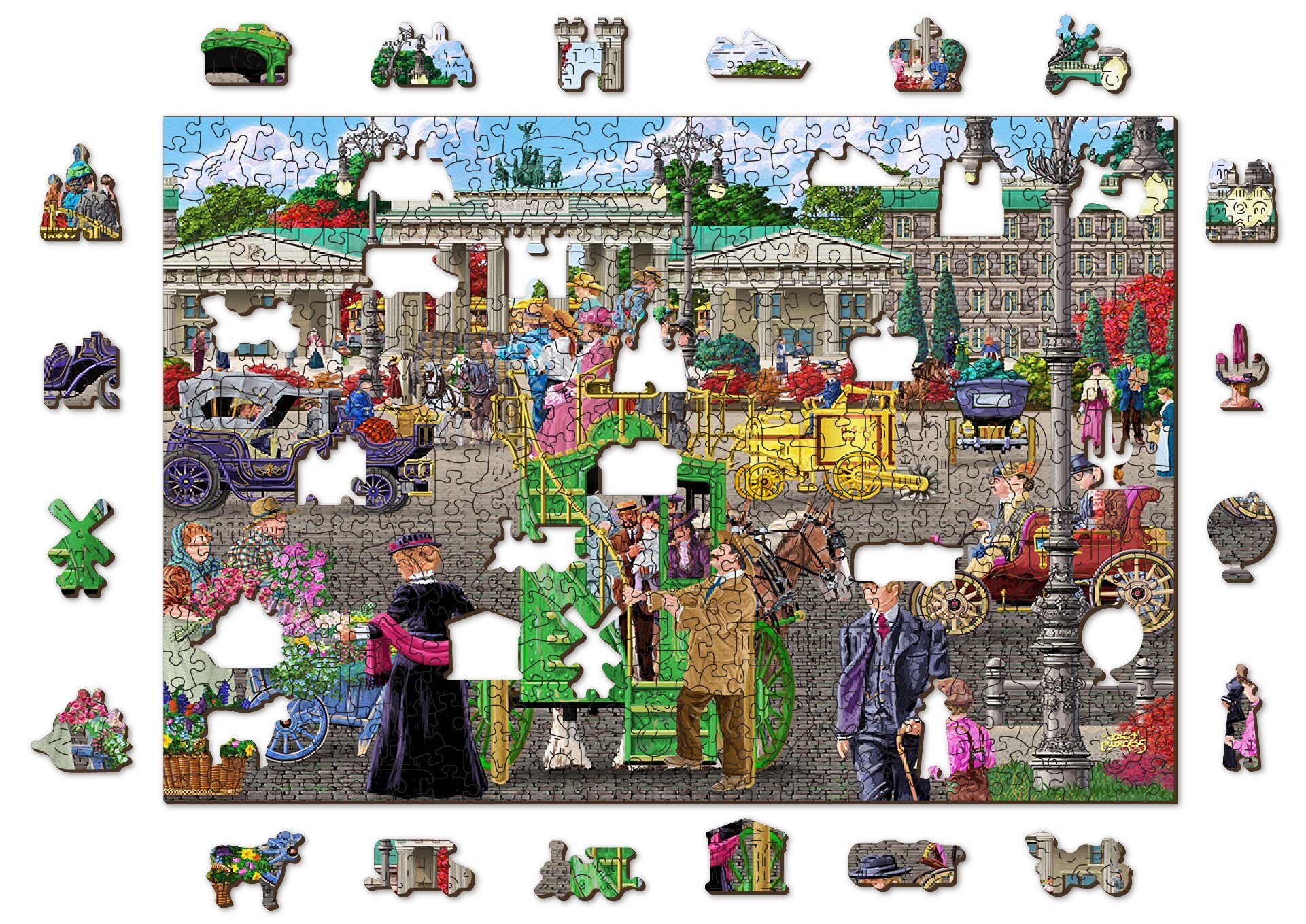 Laserem vyřezávané dřevěné puzzle WOODEN CITY se svými speciálně tvarovanými dílky je neskutečně zábavné. Část dílků je vyrobena ve tvaru zvířat, staveb nebo předmětů , jejichž výsledný efekt umocňují laserem zvýrazněné detaily. Tyto dílky mohou samostatně stát jako drobné figurky. Skládání puzzle s různotvarými dílky je obtížnější a představuje větší výzvu, než skládání klasického puzzle. Puzzle je navíc oboustranné , skládat můžete jak podle obrázku (lícová strana), tak podle tvaru (rubová strana se vzorem). Značka WOODEN CITY kromě unikátního konceptu puzzle nezapomíná na ekologii, u těchto výrobku proto nenaleznete žádné plastové obaly .