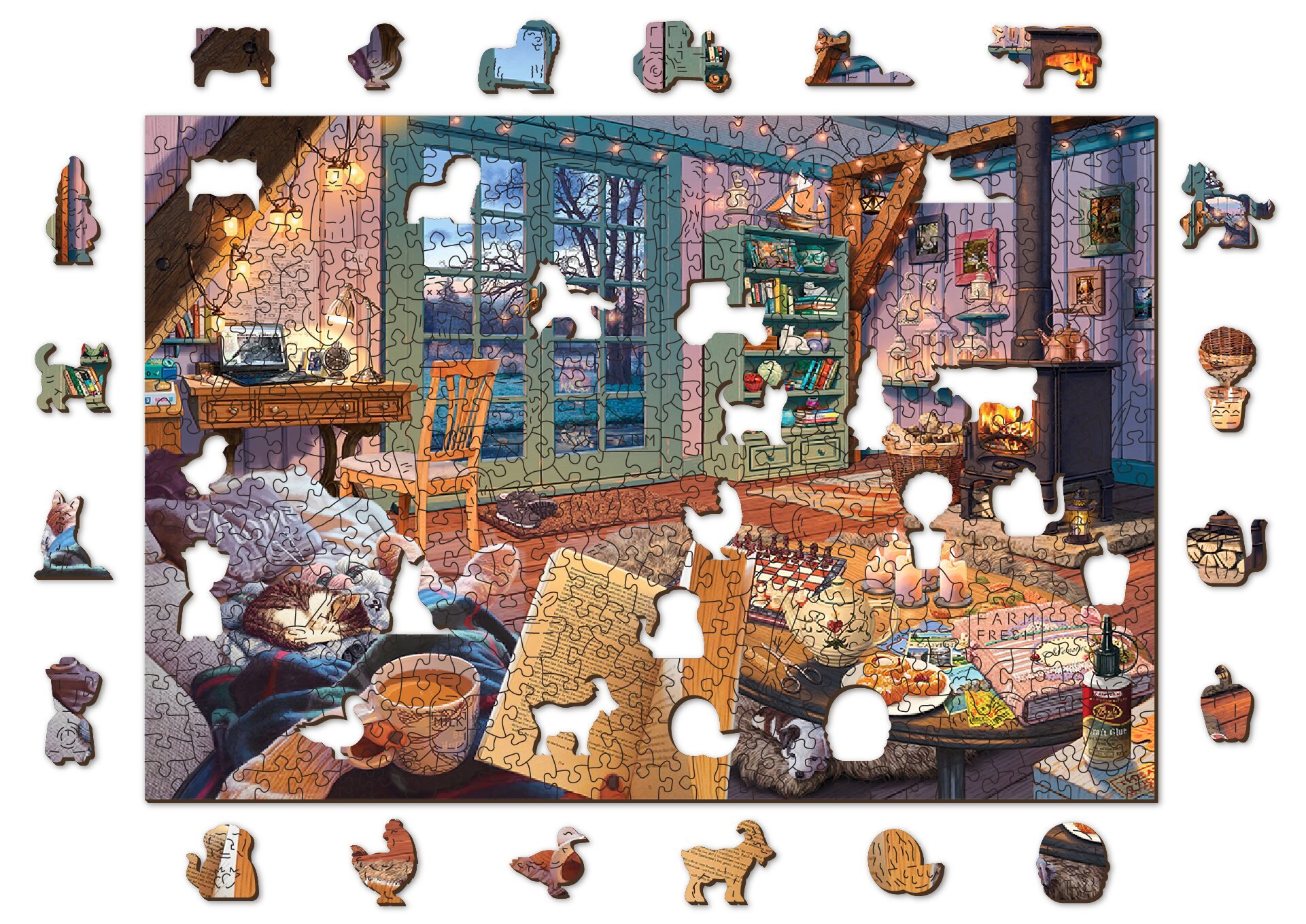 WOODEN CITY Dřevěné puzzle Útulná chata 2v1, 505 dílků EKO