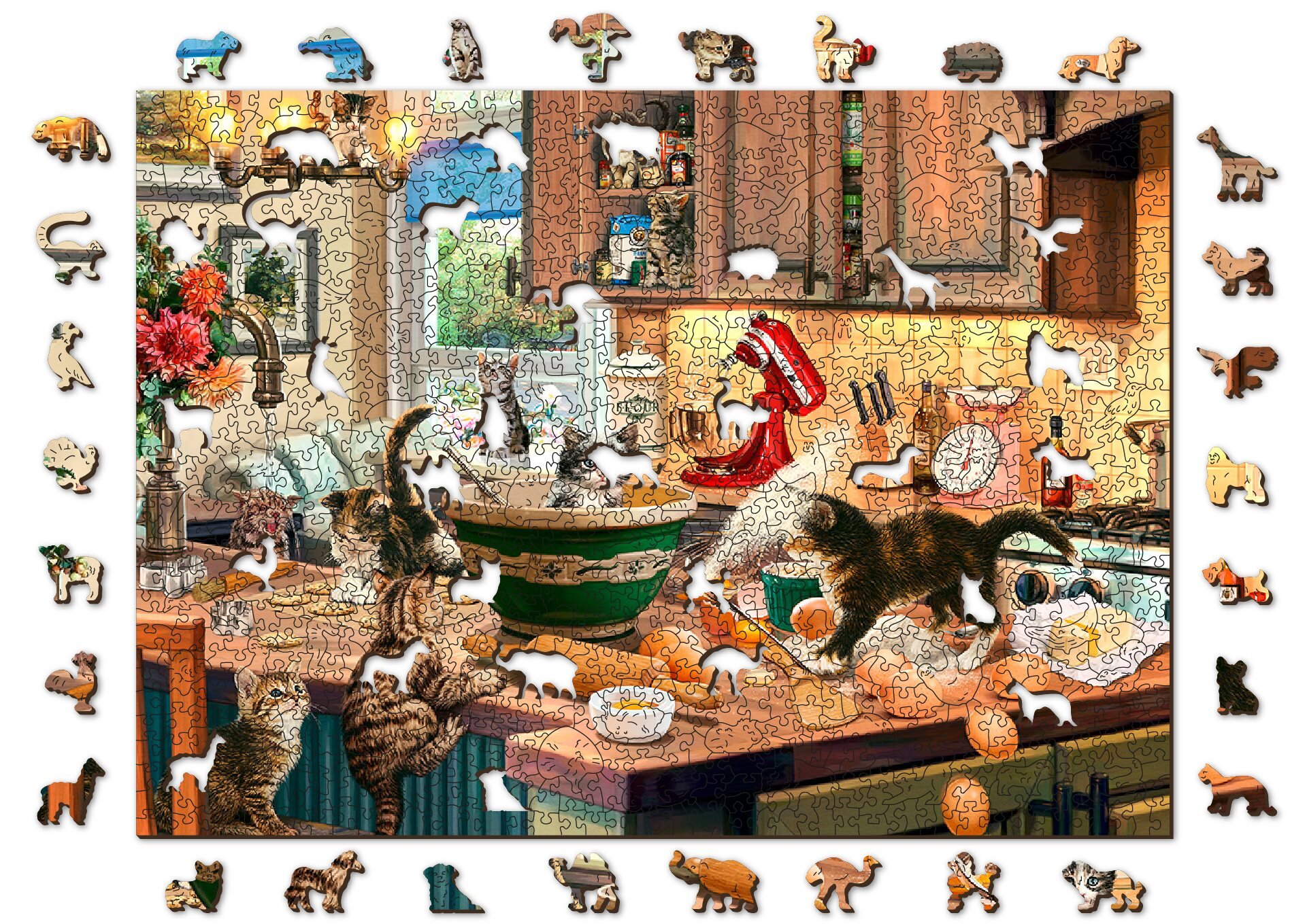WOODEN CITY Dřevěné puzzle Neposedná koťátka v kuchyni 2v1, 1010 dílků EKO