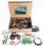 unikátně tvarované dílky, část dílků je např. ve tvaru náklaních aut, vozidel, věcí i benzinové pumpy
