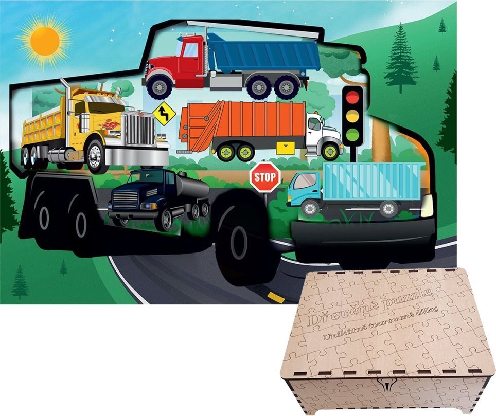FA LIXEN Dřevěné puzzle Nákladní auta XL 389 dílků v dárkové krabičce