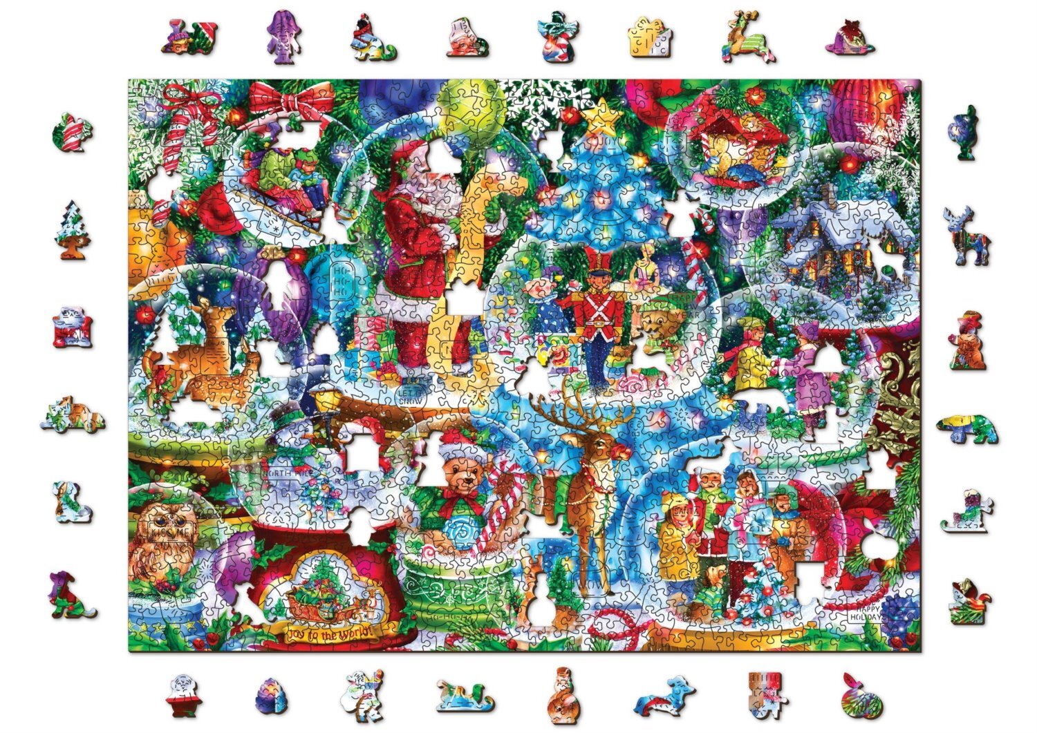 WOODEN CITY Dřevěné puzzle Vánoční sněžítka 2v1, 1010 dílků EKO