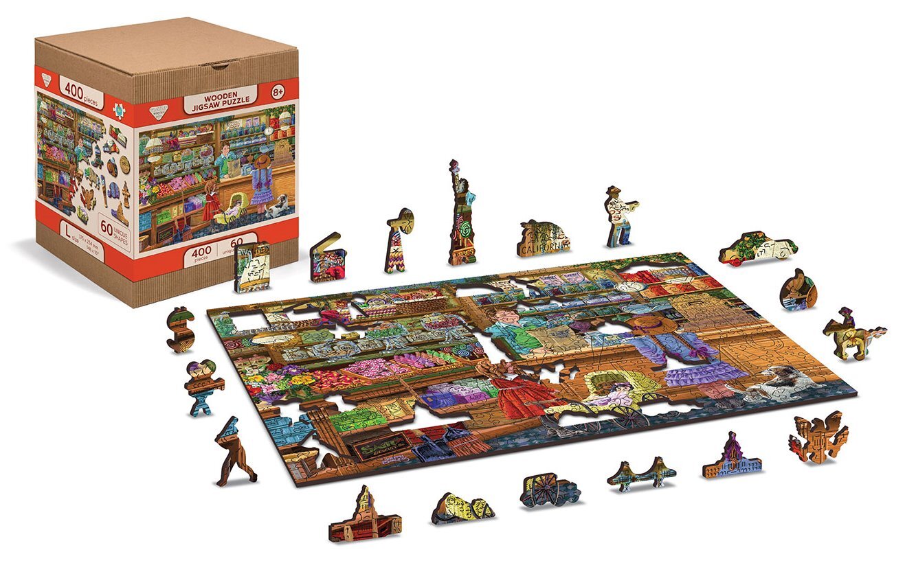Laserem vyřezávané dřevěné puzzle WOODEN CITY se svými speciálně tvarovanými dílky je neskutečně zábavné. Část dílků je vyrobena ve tvaru zvířat, staveb nebo předmětů , jejichž výsledný efekt umocňují laserem zvýrazněné detaily. Tyto dílky mohou samostatně stát jako drobné figurky. Skládání puzzle s různotvarými dílky je obtížnější a představuje větší výzvu, než skládání klasického puzzle. Puzzle je navíc oboustranné , skládat můžete jak podle obrázku (lícová strana), tak podle tvaru (rubová strana se vzorem). Značka WOODEN CITY kromě unikátního konceptu puzzle nezapomíná na ekologii, u těchto výrobku proto nenaleznete žádné plastové obaly .