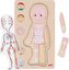 Tyto dřevěné puzzle vytvářejí obraz lidského těla s několika vrstvami, které představují kostru, vnitřní orgány, krevní oběh a svaly. Díky jednotlivým dílkům si děti mohou snadno představit, jak celé tělo funguje a jak jsou jednotlivé části propojené. Puzzle pomáhají rozvíjet nejen znalosti o lidském těle, ale podporují i jemnou motoriku a logické myšlení.