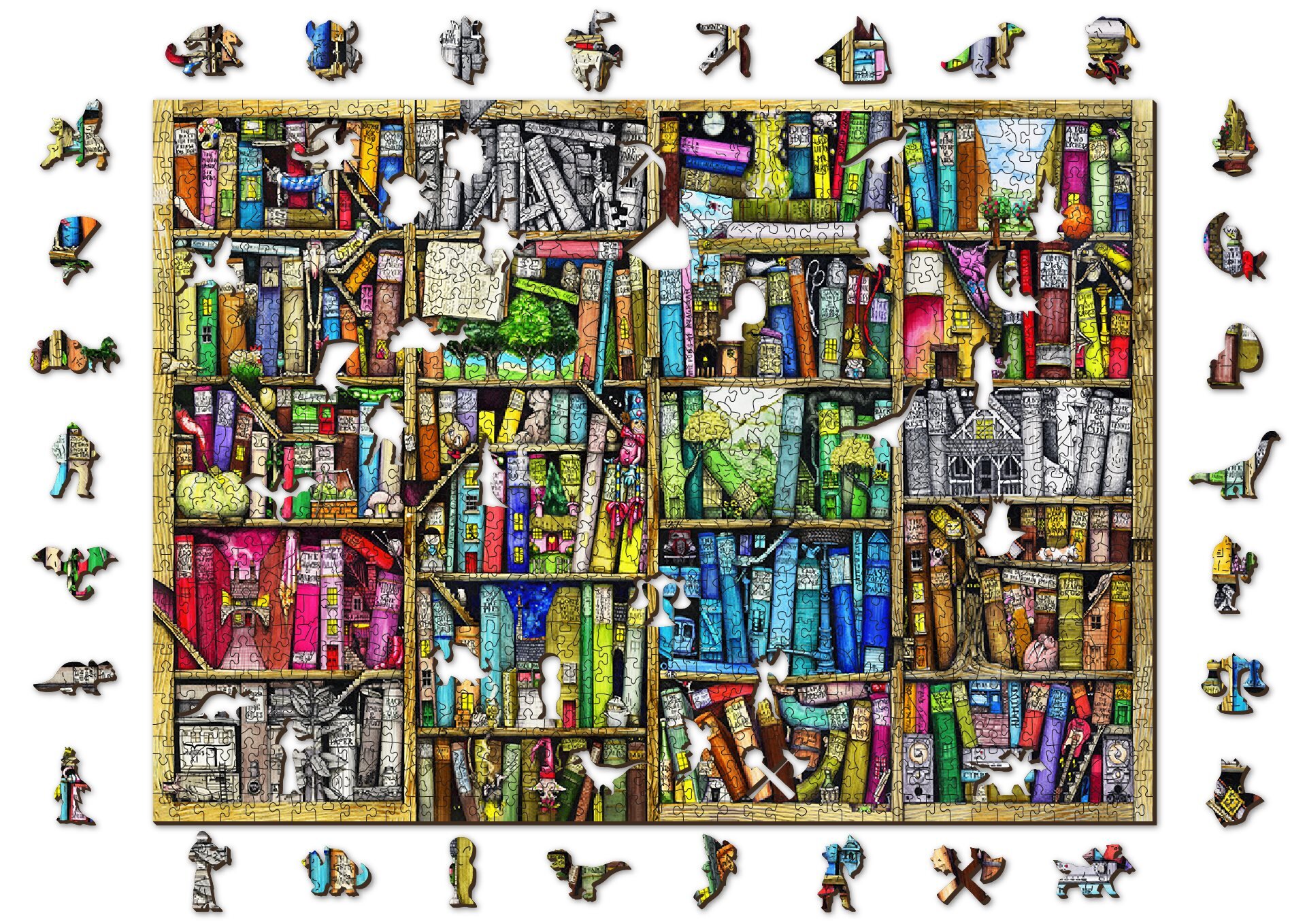 WOODEN CITY Dřevěné puzzle Knihovna 2v1, 1010 dílků EKO