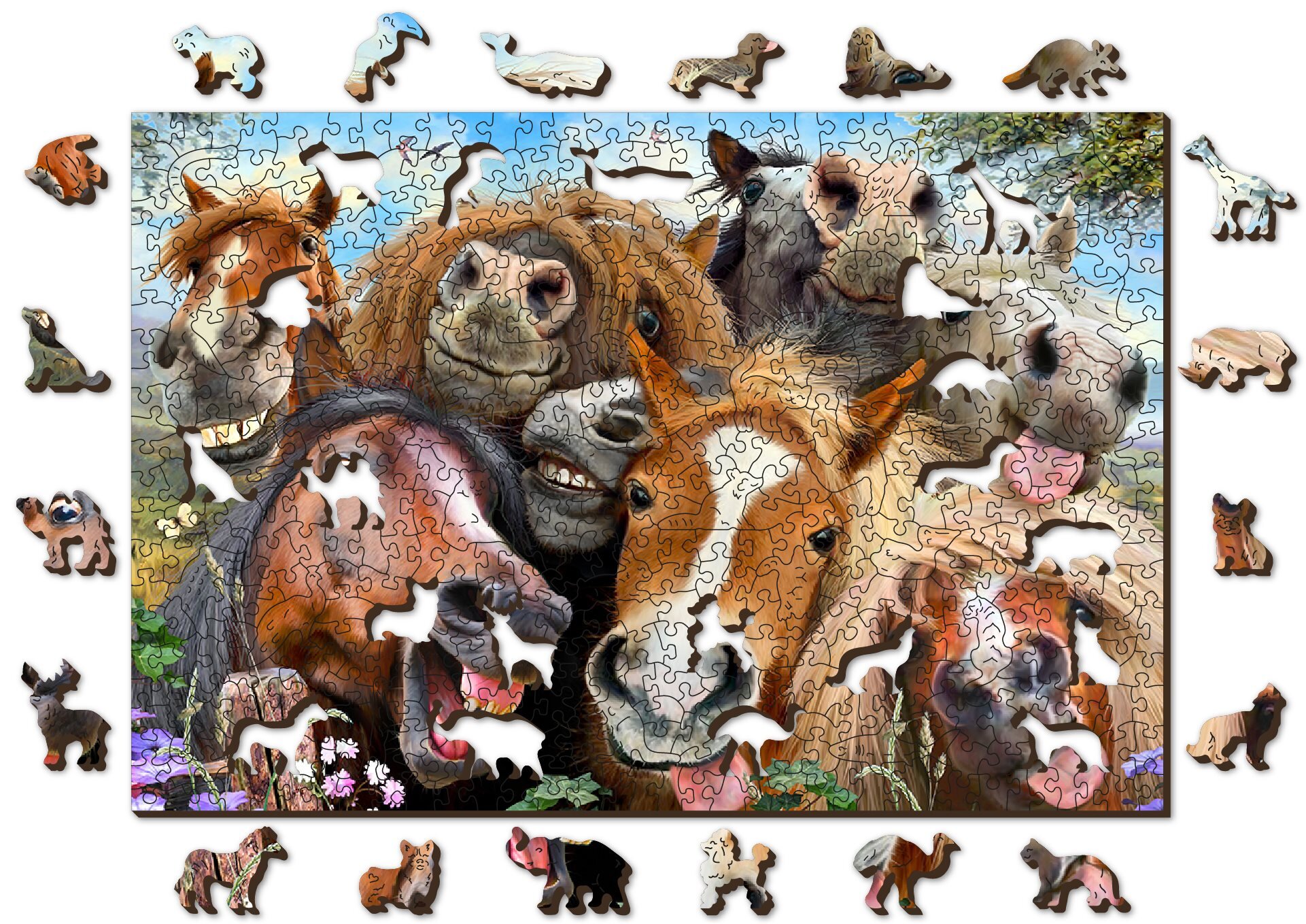 WOODEN CITY Dřevěné puzzle Koně všude kolem 2v1, 505 dílků EKO
