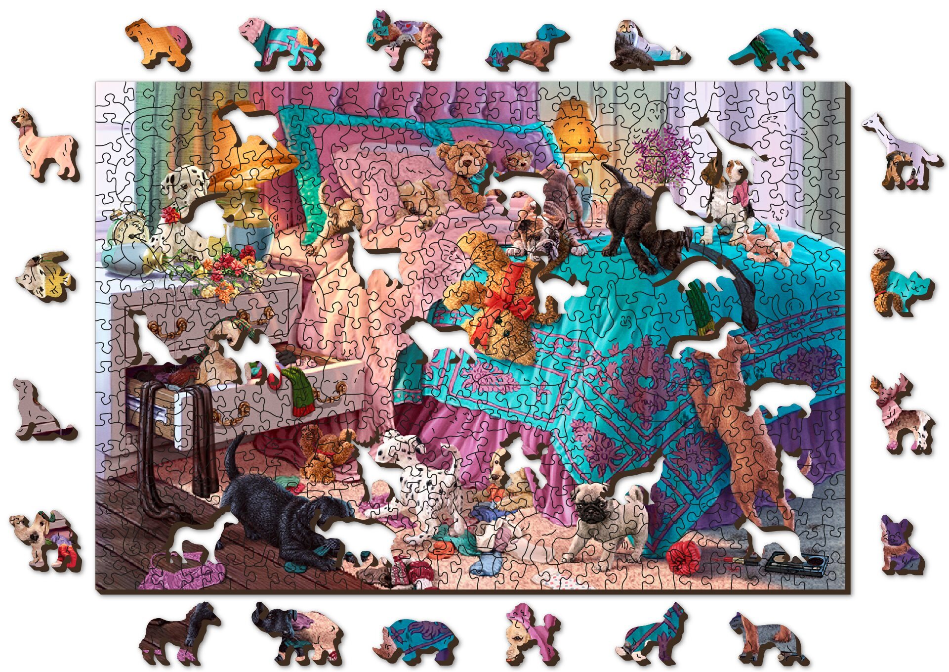 WOODEN CITY Dřevěné puzzle Nezbená štěňata 2v1, 505 dílků EKO