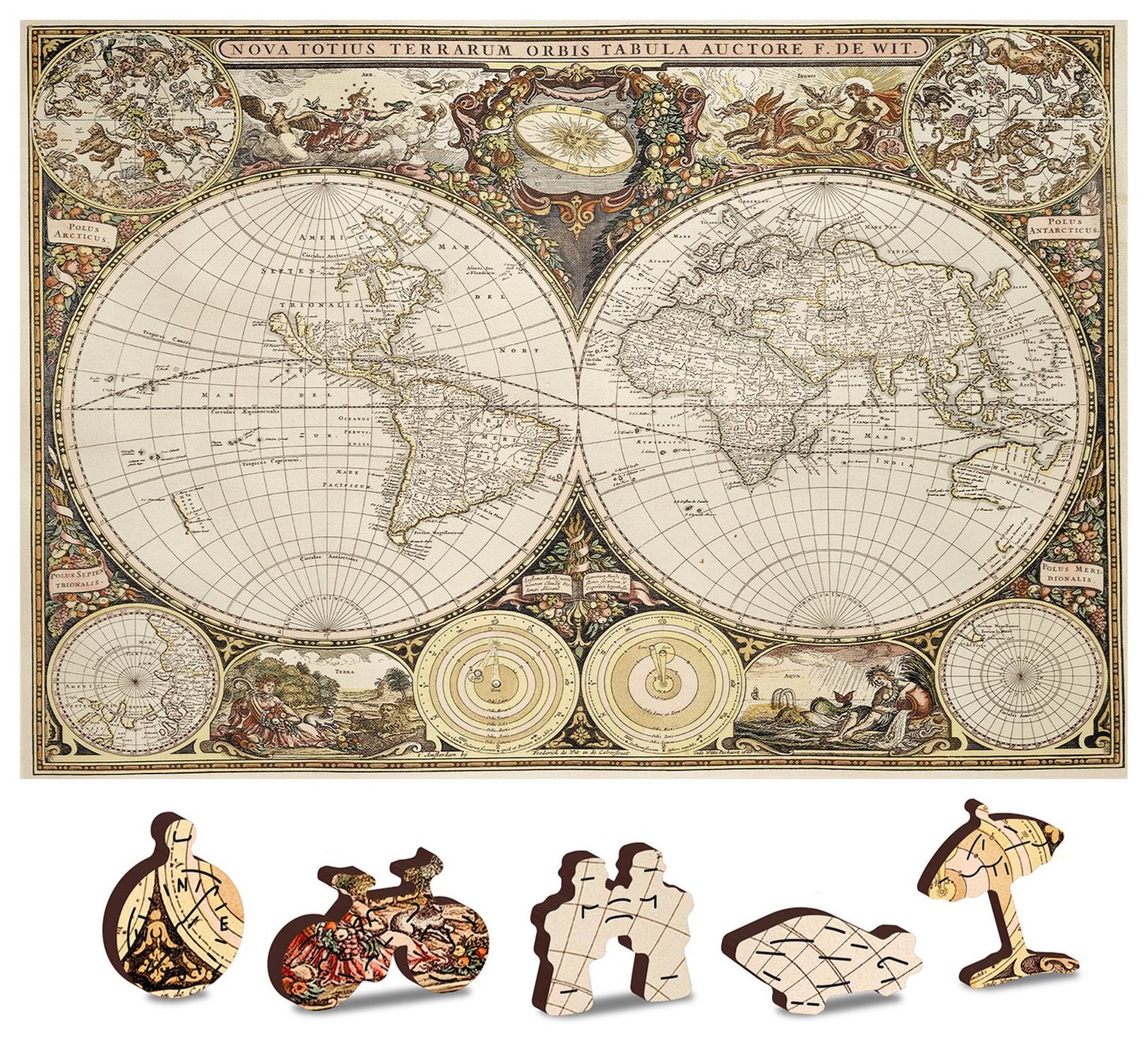 WOODEN CITY Dřevěné puzzle Antická mapa světa 2v1, 75 dílků EKO