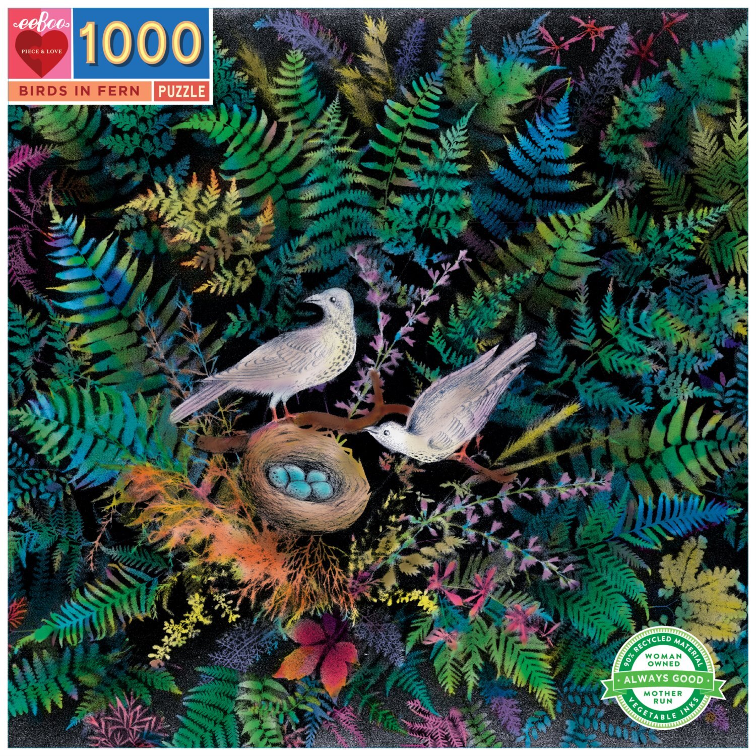 EEBOO Čtvercové puzzle Ptáci v kapradí 1000 dílků