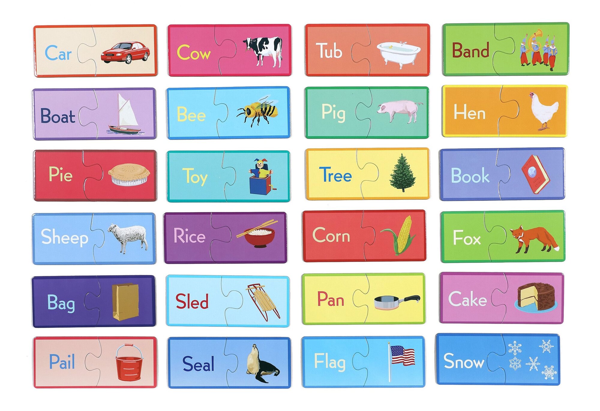 Párovací puzzle s obrázky a anglickými slovíčky je zábavnou formou výuky cizího jazyka. - Nejprve lze párovat dílky podle barev. - Postupně se děti naučí jednotlivá anglická slovíčka, která párují s obrázky. - Dílky jsou vyrobeny z odolného silného kartonu. - Názvy obrázků jsou uvedeny v angličtině. Dlouho předtím, než se děti naučí číst, začínají rozpoznávat jednotlivá slova. Když dospělý přečte slovo, dítě vybere odpovídající obrázek a složí z něj kompletní puzzle, dochází k většímu propojení znalostí. Vyrobeno z 90% recyklovaného šedého kartonu a tišteno inkousty na rostlinné bázi. Puzzle od amerického výrobce EEBOO.