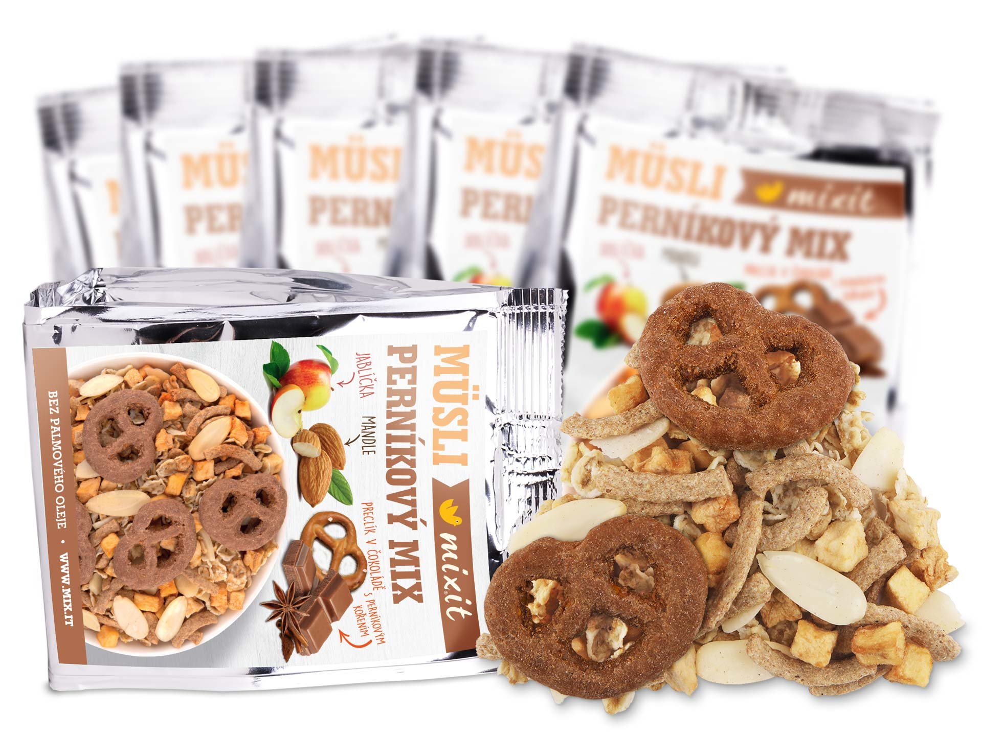 Povíme vám pohádku o perníkovém mix(it)u… Žil byl preclík, který spadnul do mléčné čokolády a perníkového koření. Z téhle šlamastyky ho vytáhlo jablíčko spolu s mandlemi a s křupavými lupínky ovsa. A přidala se k nim i dobrá vláknina, která tuto dokonalou souhru chutí završila. Že je to jen pohádka? Tak ochutnejte a staňte se její součástí i Vy!