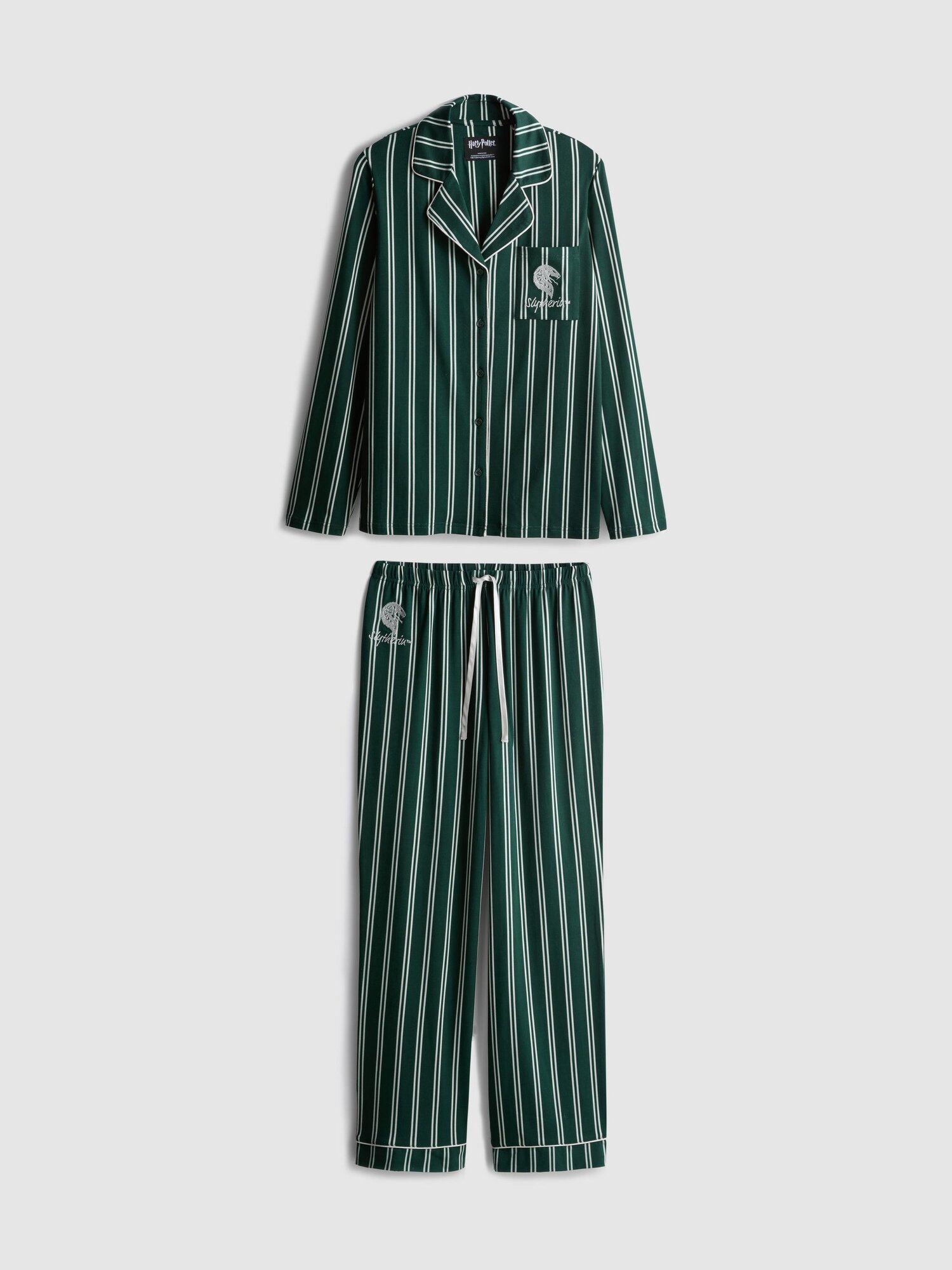 Užívej noční odpočinek jako správný student Zmijozelu díky tomuto stylovému pyžamu s motivy světa Harry Pottera. Skvělé jako domácí oblečení, na spánek i lenošení.