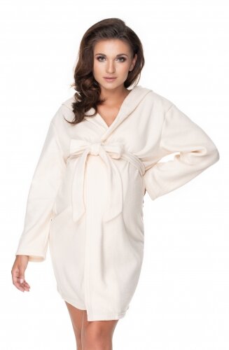 Be MaaMaa Těhotenský župan polar s kapucí - krémový; S/M
