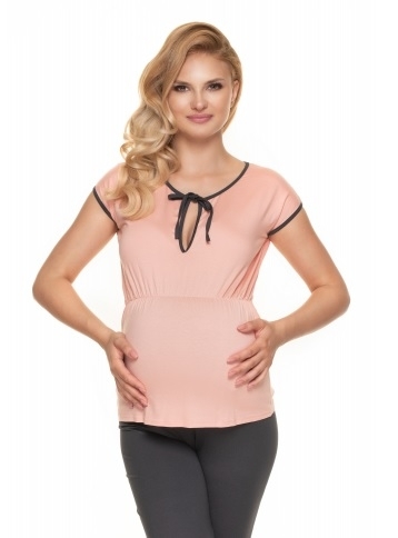 Be MaaMaa Těhotenské, kojící pyžamo s kr. rukávem - pudrová/šedá, vel. L/XL; L/XL