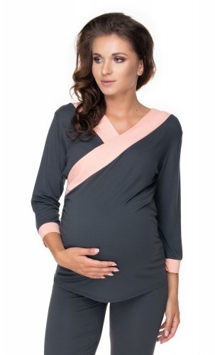 Be MaaMaa Těhotenské, kojící pyžamo 3/4 - grafit/ růžové lemování, vel. L/XL