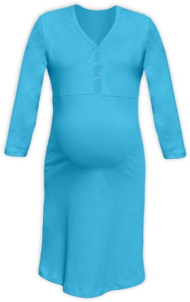 JOŽÁNEK Těhotenská, kojící noční košile PAVLA 3/4 - tyrkys; L/XL