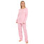 Dámské pyžamo Gina ocení každá žena, která má ráda pohodlí, jak v létě, tak v zimě. Pyžamo se skládá z trička s dlouhými rukávy a dlouhých spodních kalhot. Vyrobeno je ze 100% bavlny.