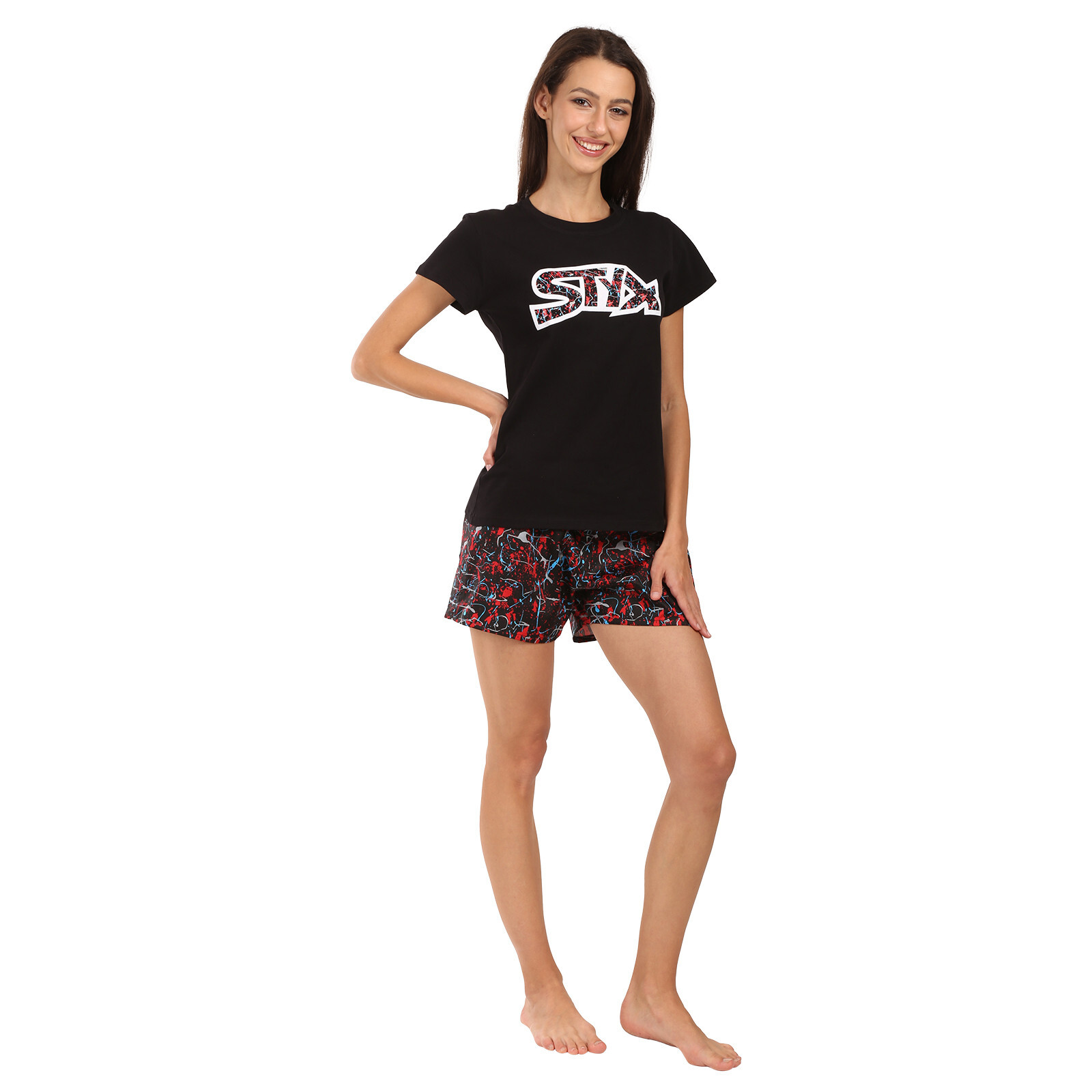 Střih pyžama Styx ti poskytne dokonalé pohodlí při lenošení v posteli i na gauči. Krátké nohavice a volný střih trenek ti zajistí maximální volnost pohybu, zatímco klasická guma v pase zaručuje, že trenky dobře sedí a nikde netlačí. Krátký rukáv na tričku je perfektní volbou pro teplejší noci i domácí relaxaci. Originální design a výrazné barvy zase zaručí, že v posteli nebude nuda, ani když spíš sama.