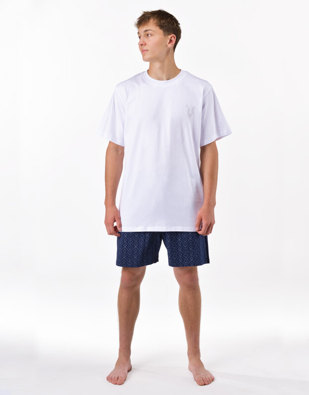 Tohle prádlo je jasným důkazem, že pánské pyžamo stále patří do šatníku současného muže. Horní díl s krátkým rukávem je ideální pro jaro, léto i celoroční nošení v teplejším prostředí. Spodní díl tvoří trenky s pohodlnou klasickou gumou v pase, která dobře drží a přitom netlačí. Vzdušný střih oceníš nejen v posteli, ale i při domácím lenošení.