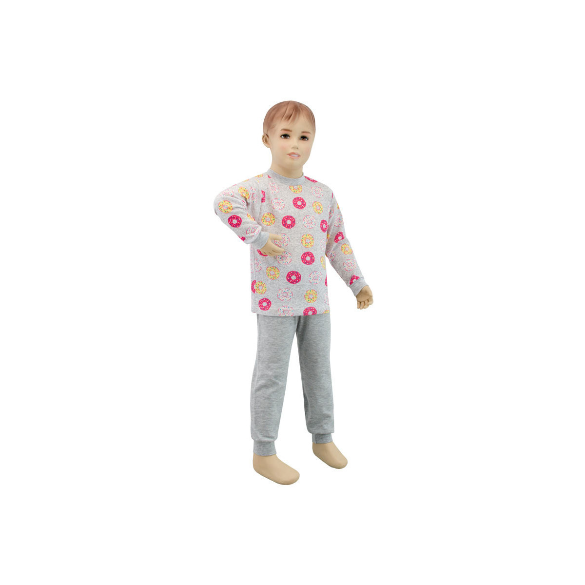 Popis: - bavlněné dětské pyžamo s potiskem žlutého donutu je vhodné pro malá i větší děvčata - pružný úplet okolo krku, rukávů a kotníků - v pase na vyměnitelnou gumu - velmi pohodlné dětské pyžamo - díky kvalitnímu materiálu si pyžamo drží stále stejný tvar Použití: - pro celoroční použití Velikosti: - 122.
