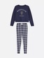 Dámské pyžamo s dlouhým rukávem a dlouhými kostkovanými kalhotami.