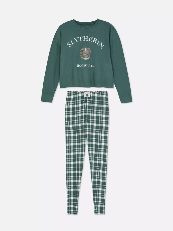 Dámské pyžamo s dlouhým rukávem a dlouhými kostkovanými kalhotami.