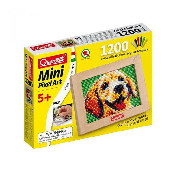 Začínáme s PIXEL ART. Základní sada obsahuje 1200 kolíčků v 6 barvách, destičku a kartonový rámeček na obrázek pejska/kočičky/žáby/papouška. Zábavná stavebnice s úžasným vizuálním efektem po sestavení.