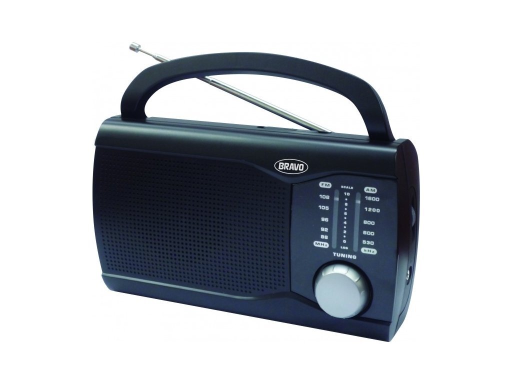 BRAVO Přenosné rádio B-6009, FM, AM, napájení síť/aku, černé