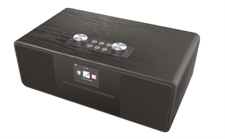Internetové rádio, s podporou DAB+/FM, Bluetooth, WiFi, DLNA, CD přehrávač ovládání pomocí app (také), vč. přehrávání hudby z telefonu, barevný displej, výstupní výkon: 2 x 10 W, síťový adaptér, dálkové ovládání. DAB+ Frekvence: Band III (174.0 - 240.0 MHz).